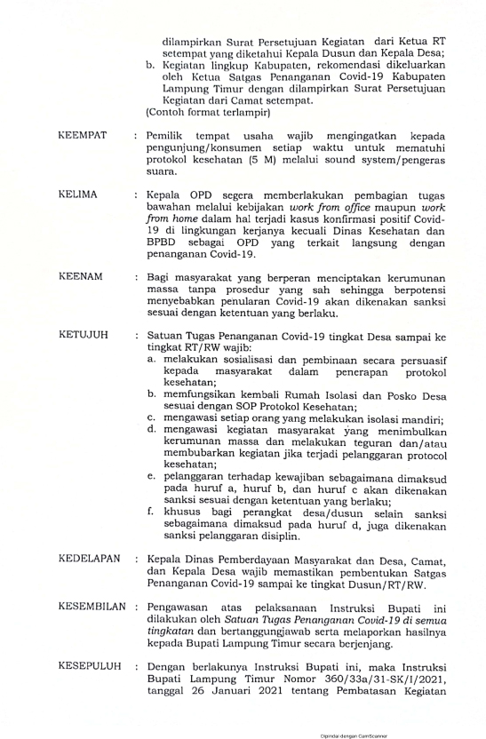 Berikut Instruksi Bupati Nomor 360/71.a/31-SK/lll/2021.